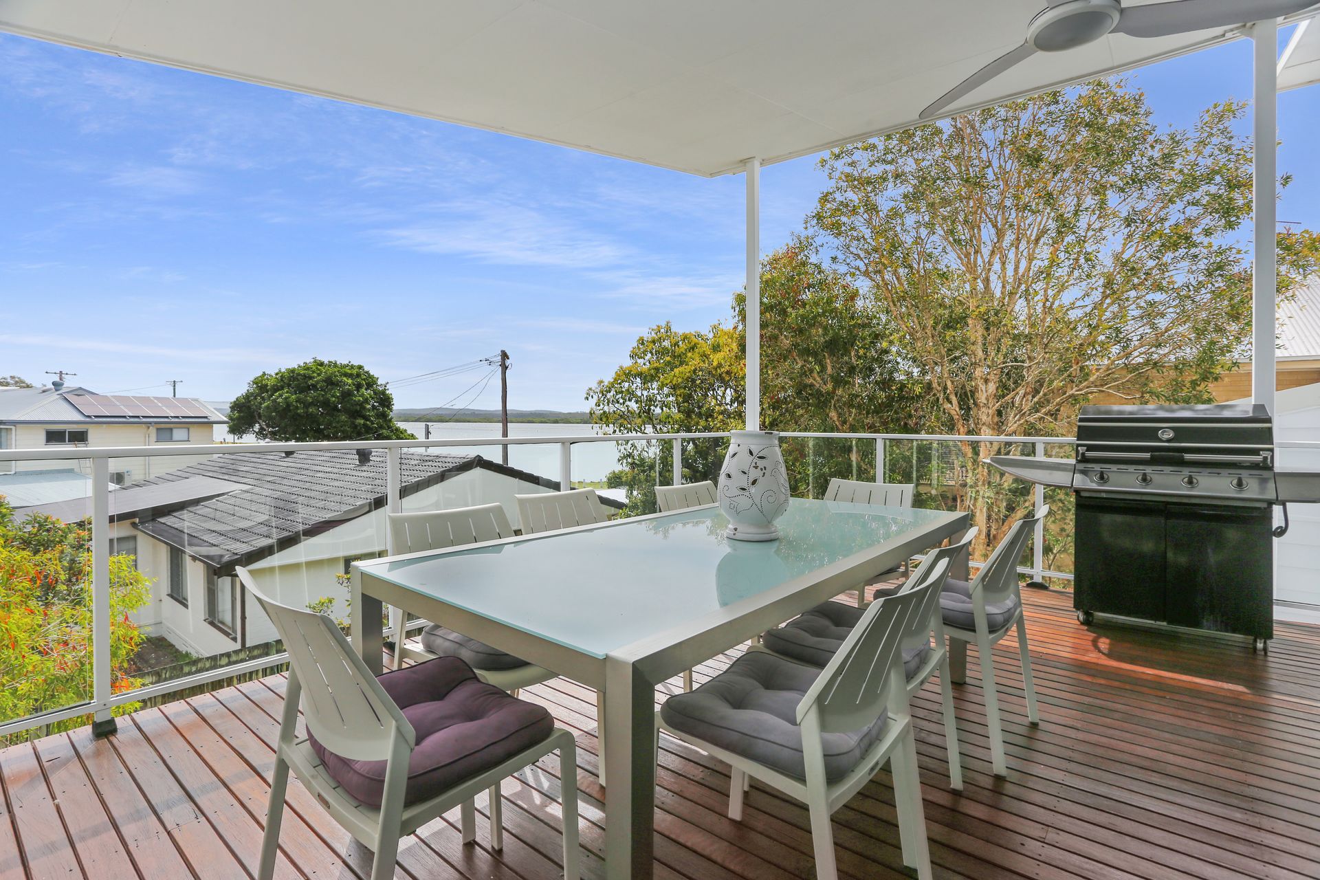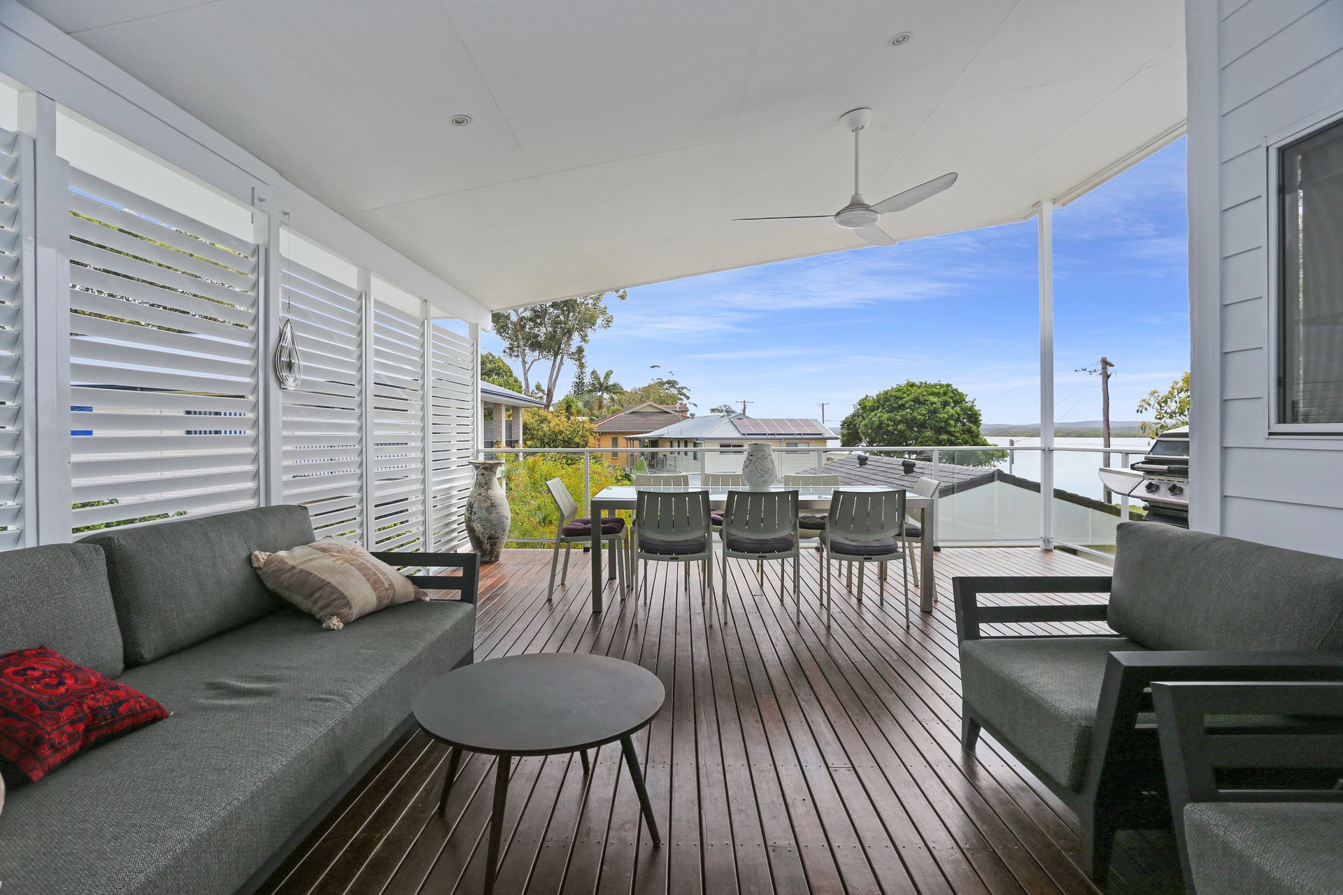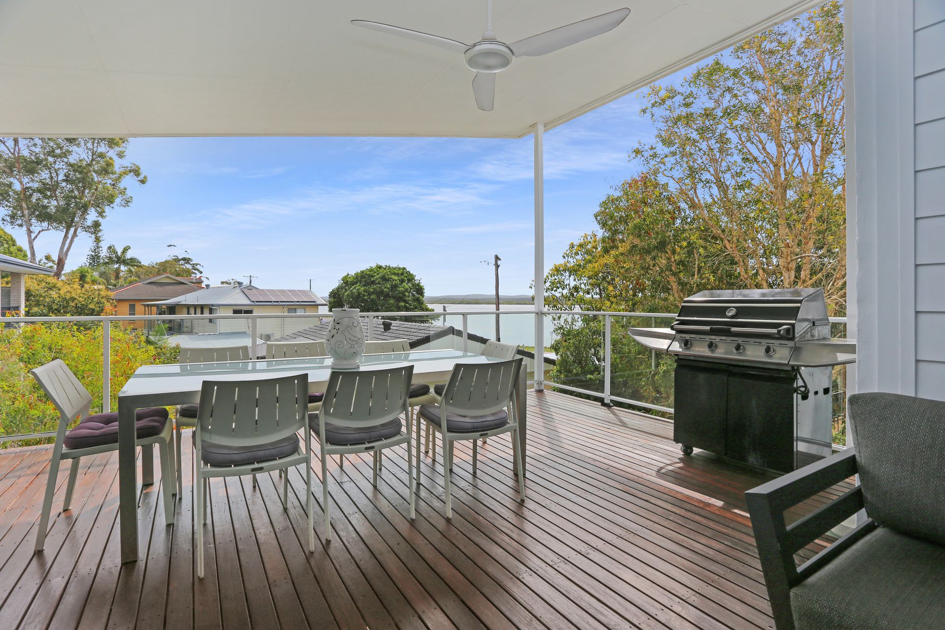 Expansive deck with views of the Myall River