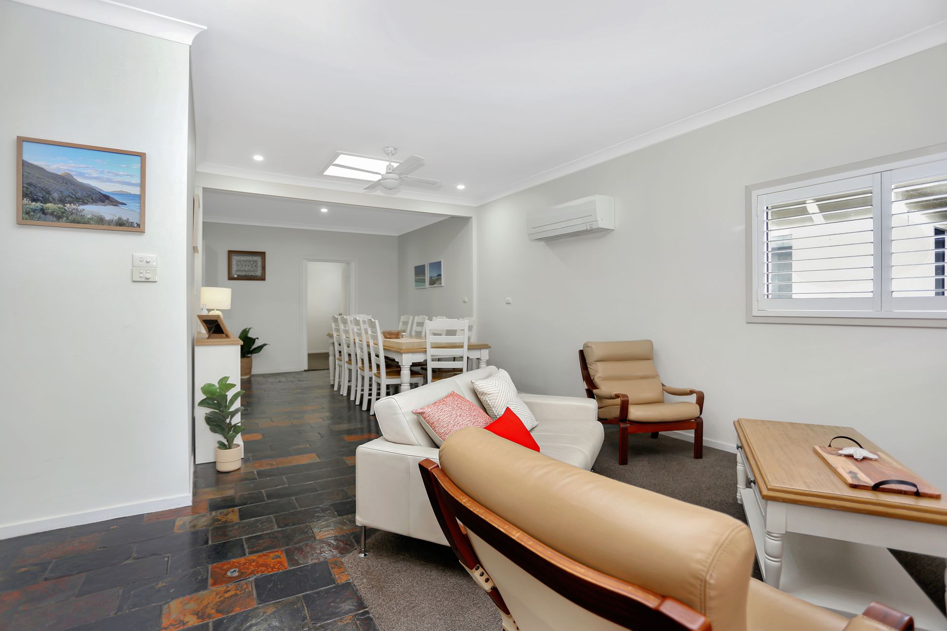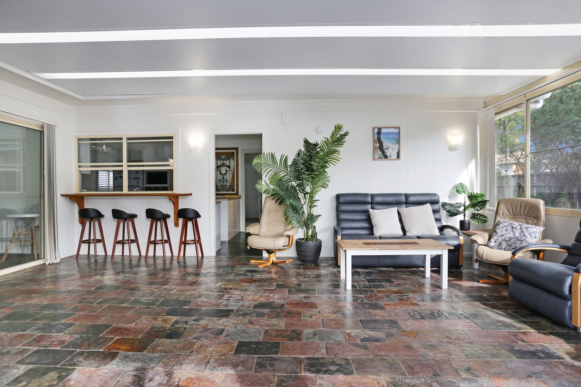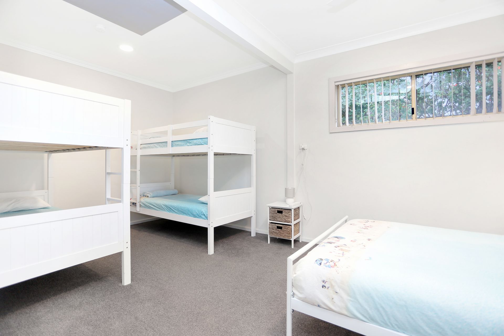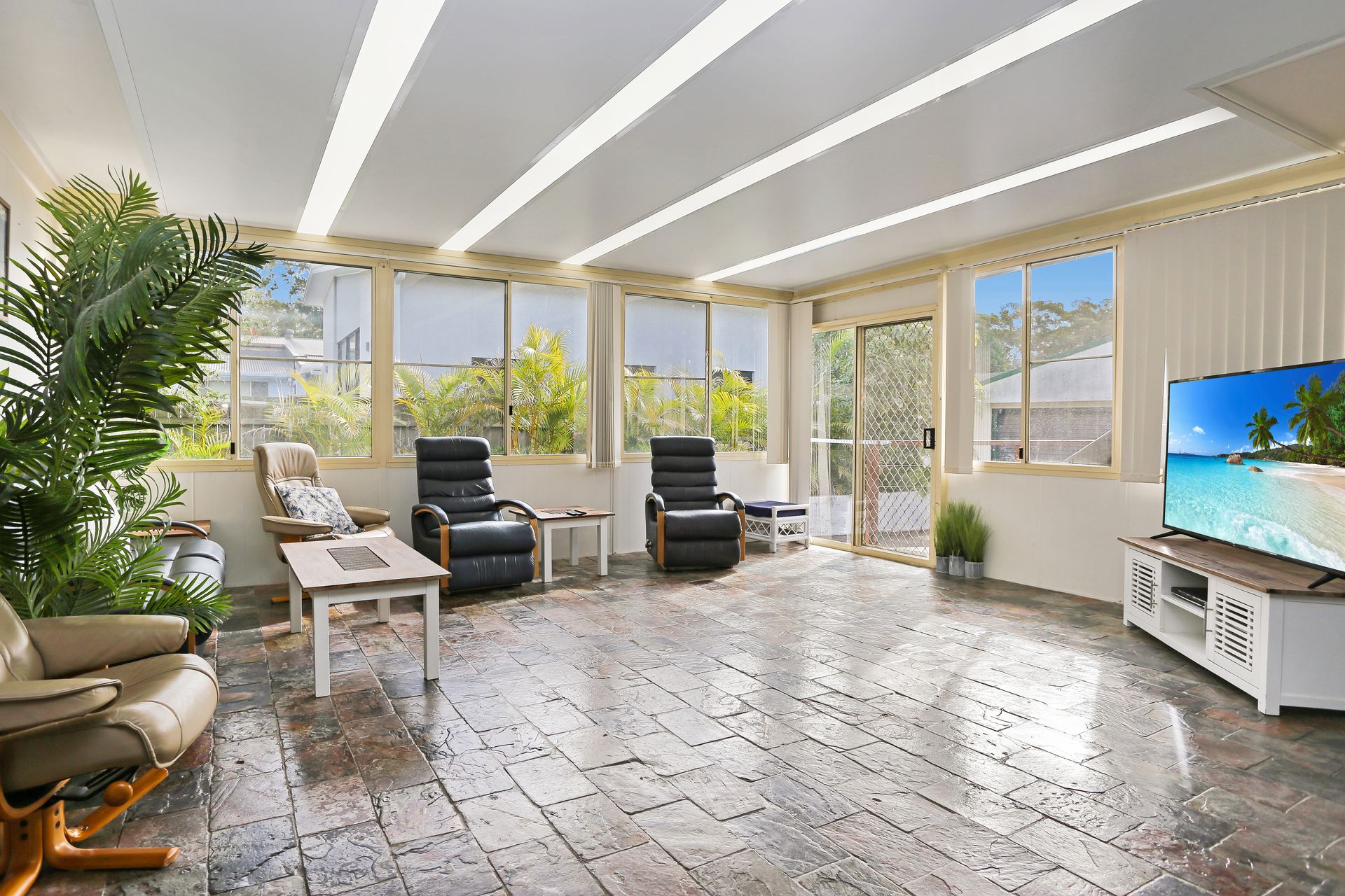 The yard is fully fenced allowing small children to utilise the lovely, grassed area or ride their bikes along the driveway. The Garage is not available for parking as it has been converted into an extra family space, battle one another with a game of ping pong keeping the whole family entertained. Park the cars up once you arrive and let the family live the Hawks Nest lifestyle, strolling to all the local favourite spots.