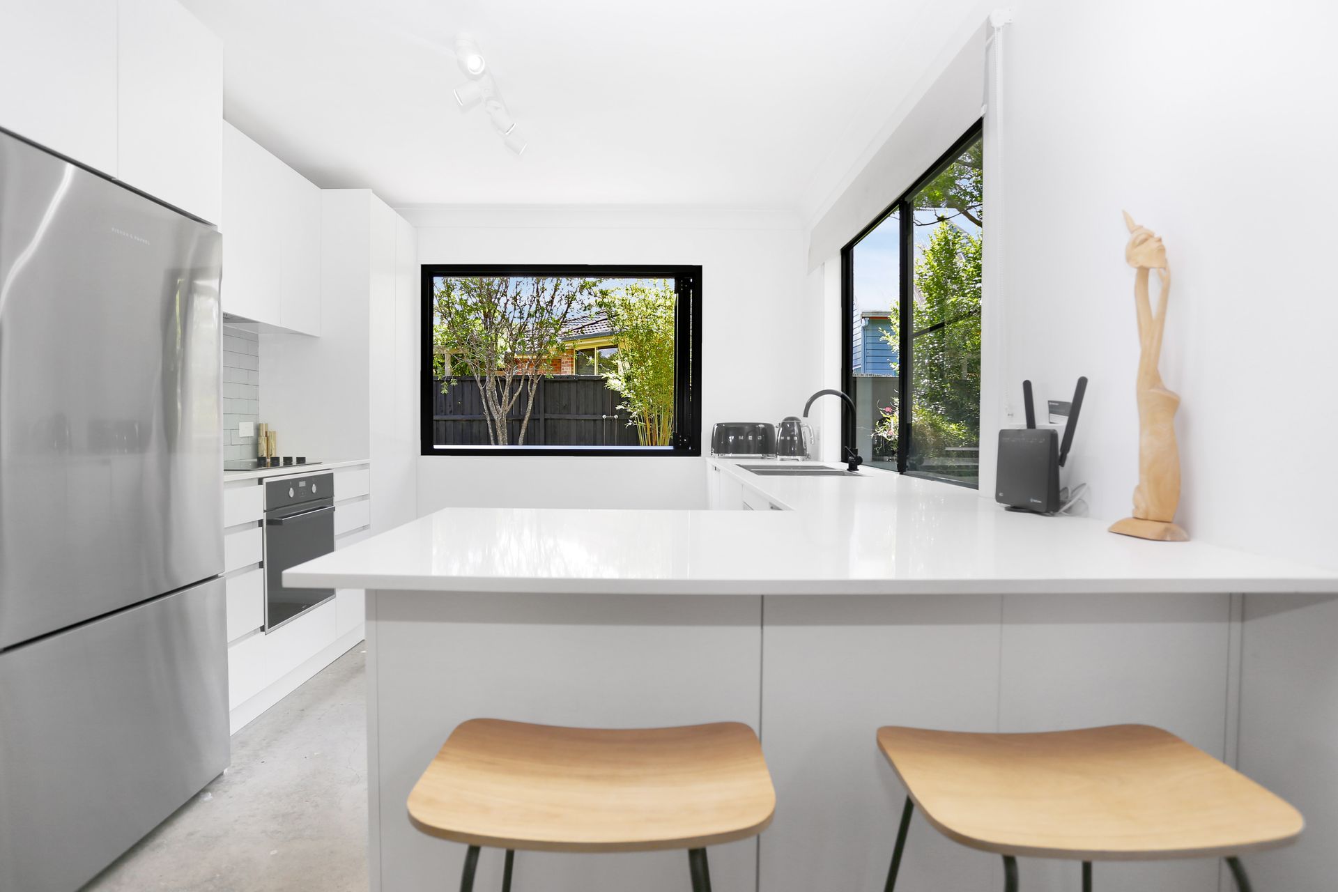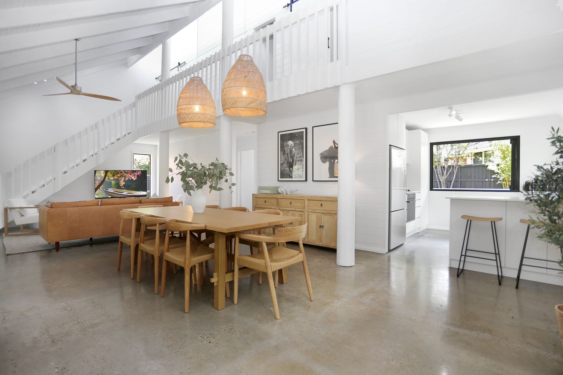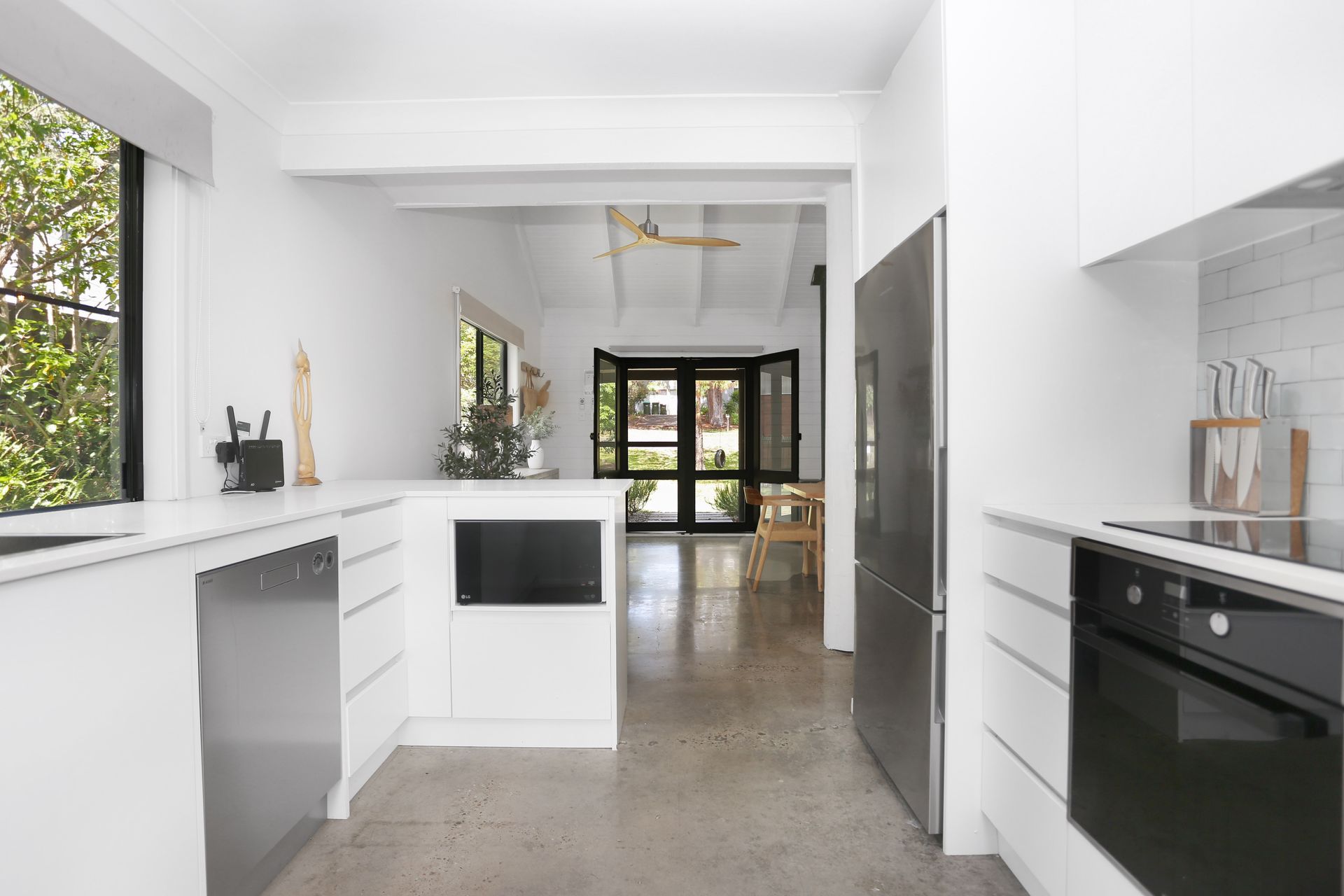 This light filled home features an open plan living area, with three french doors flowing out into the front yard. A fully renovated kitchen, perfect for entertaining/dining and boasts a large servery window connecting the outdoor breakfast bar and backyard.