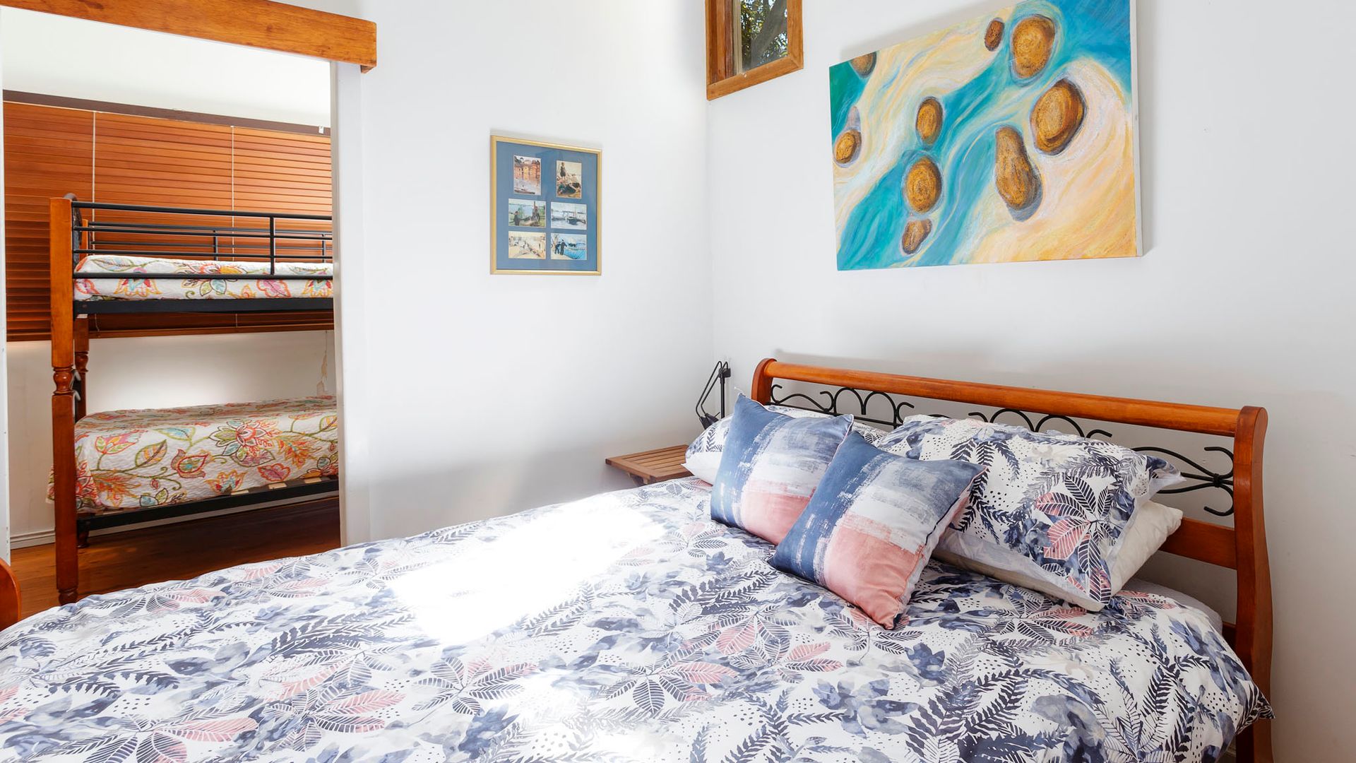 Boasting 6 bedrooms and 3 bathrooms plus a shower and toilet in the laundry. This makes the perfect all year round holiday destination. This home is designed for holidays and relaxation. Just one street back from the main beach and walking distance to shops, restaurants and the golf club puts it in the perfect holiday position. The unique design of the home means you can spread out. Spacious 2-bedroom home at the front and additional three rooms and extra bathroom if you're holidaying with a crowd.