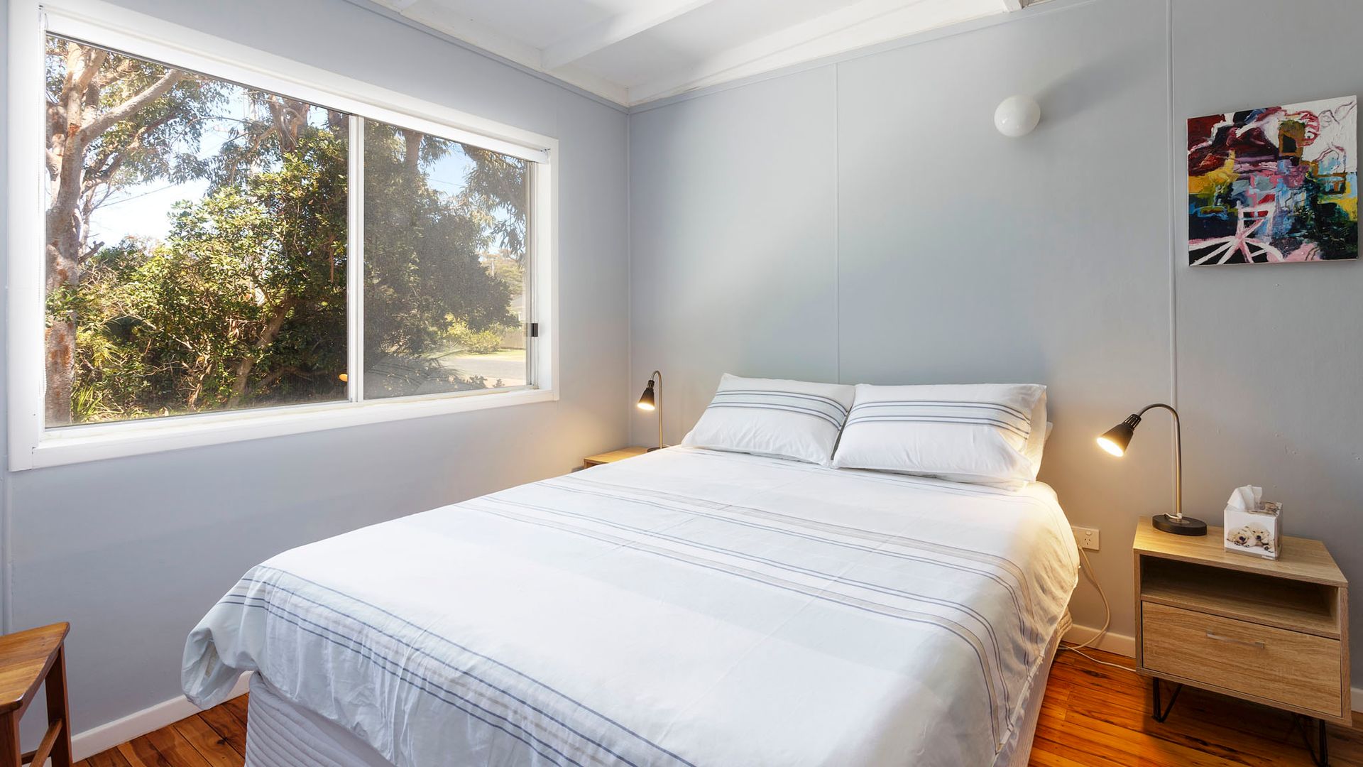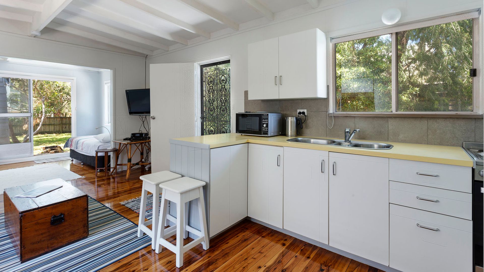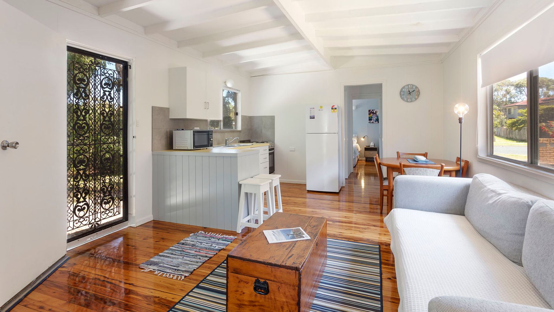 This two-bedroom home is very comfortable featuring polished floorboards throughout and comfortable furnishings. You will enjoy your stay here.