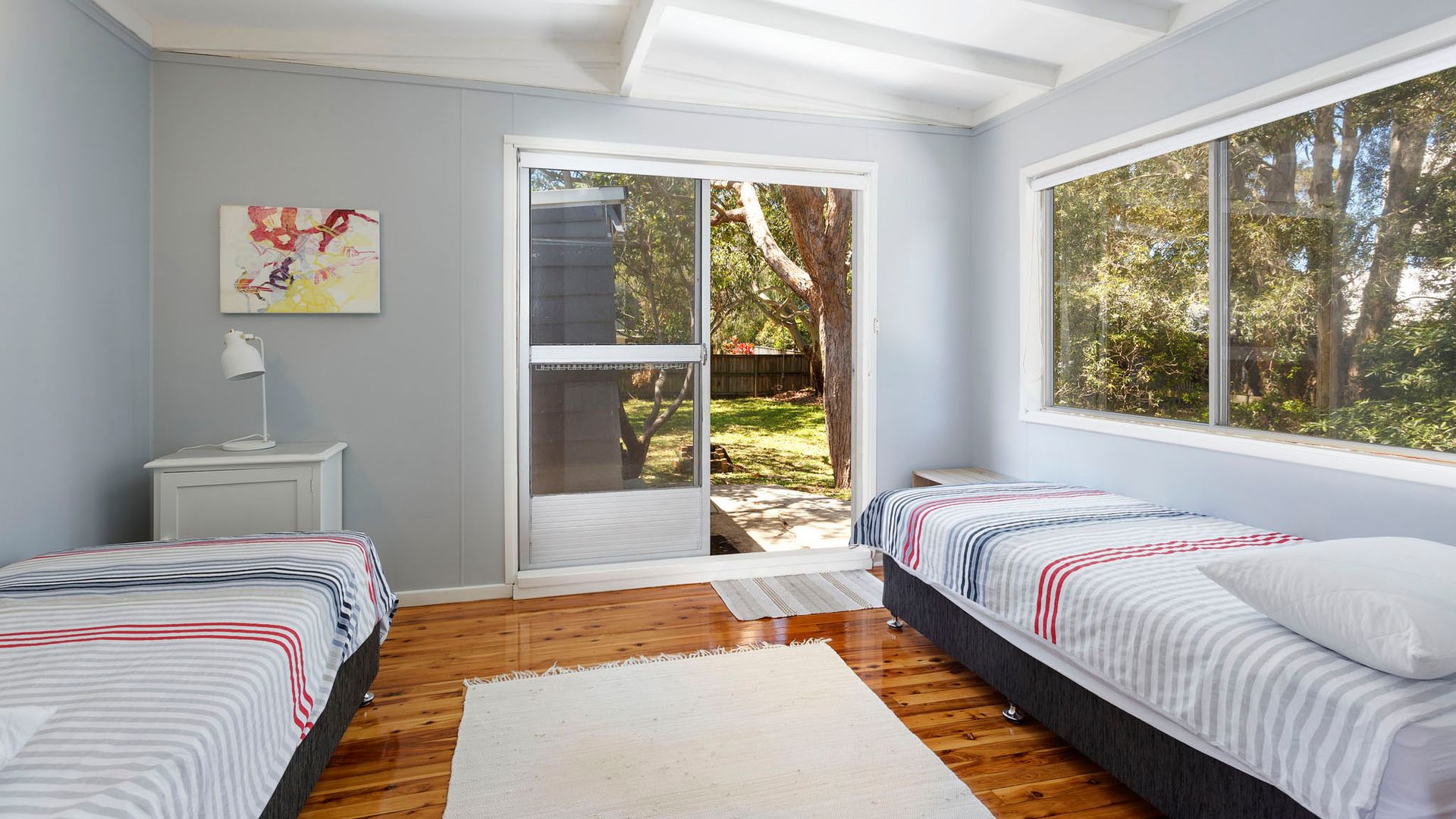 Offering a queen bed in the main room and two singles in the kids’ bedroom.