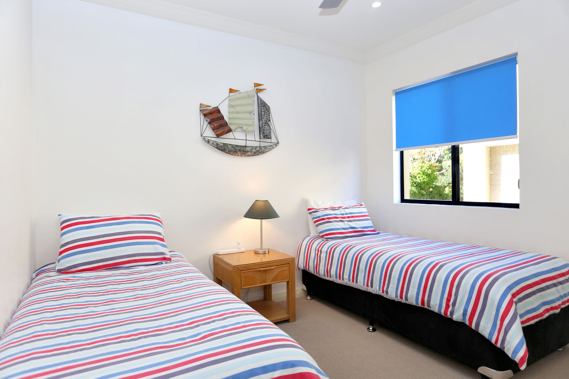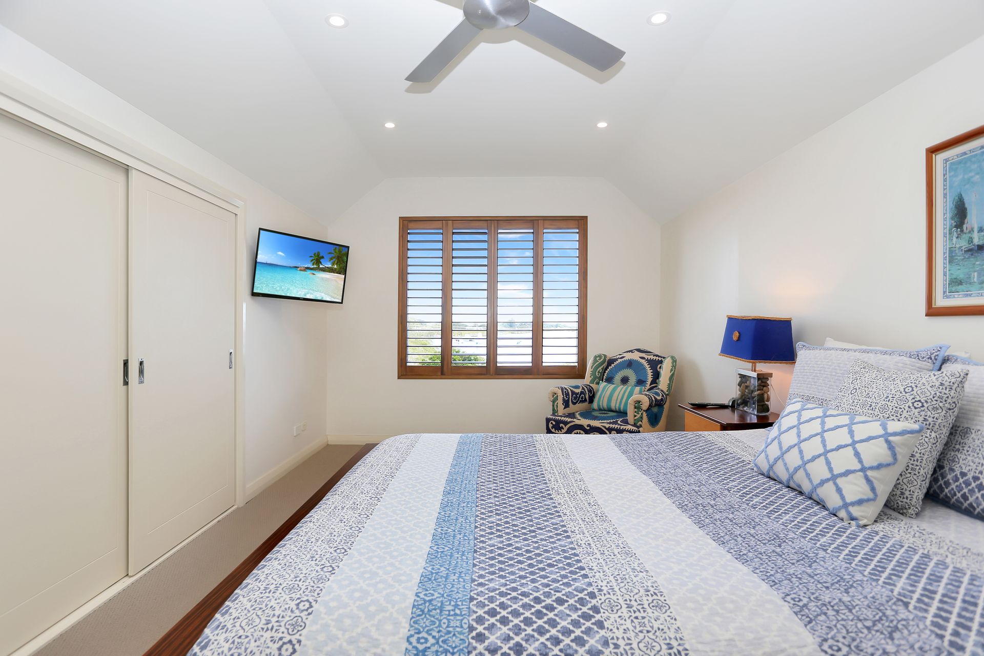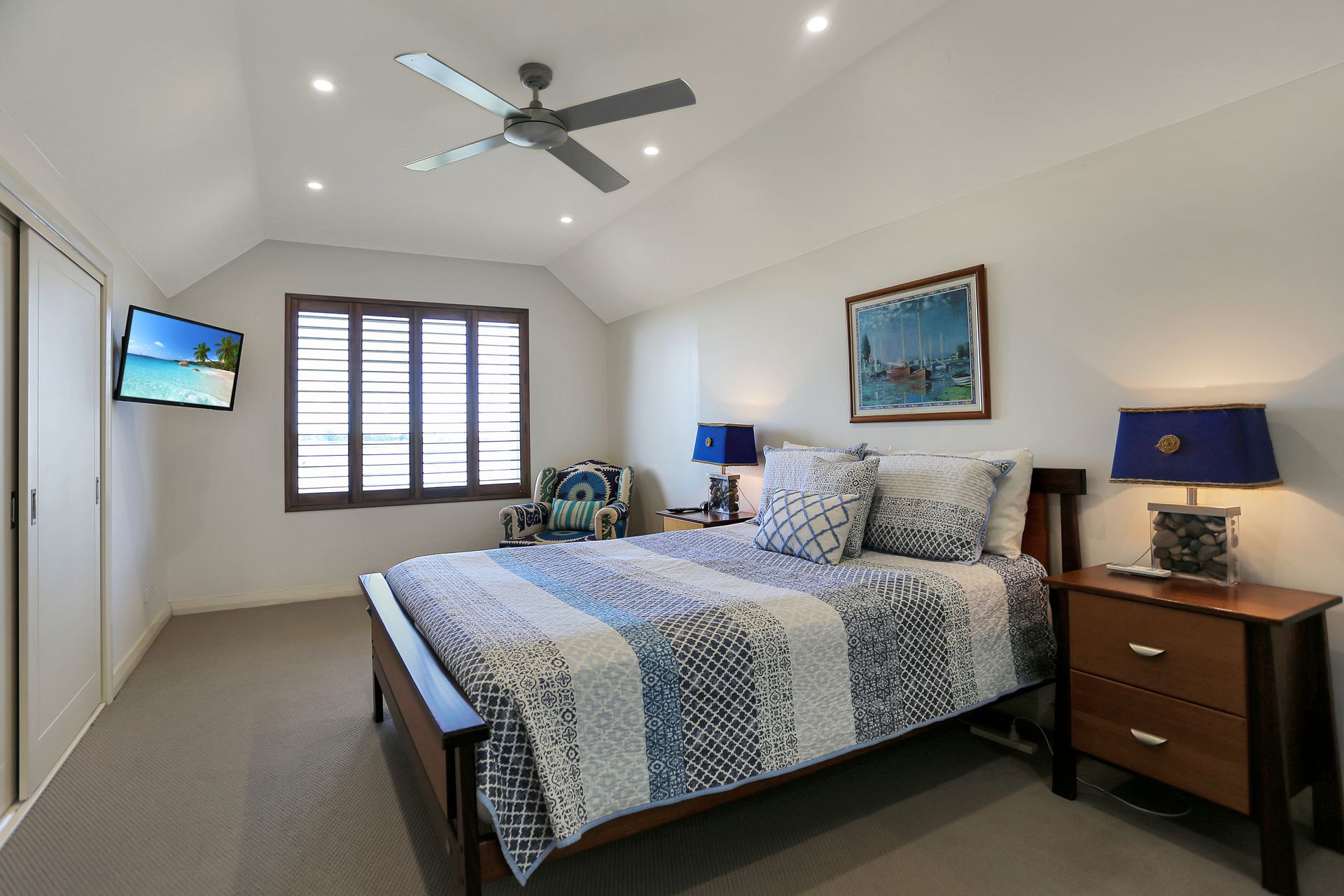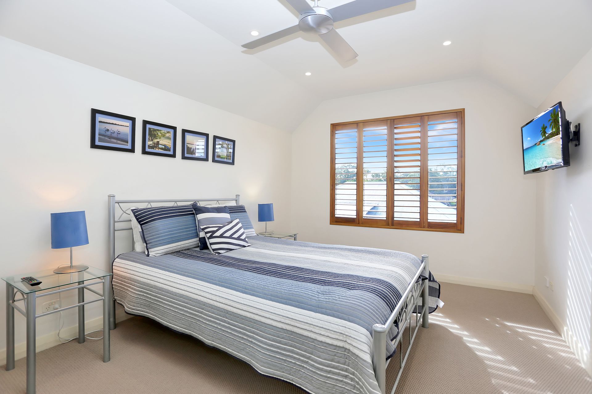 Split over 3 levels the elegantly furnished master suite features a queen-sized bed, spectacular views of the Myall River, room air conditioning and sparkling ensuite. Bedroom 2 also has a queen bed and ensuite while bedrooms 3 and 4 are on the ground level. Bedroom 3 has 2 single beds while bedroom 4 also has 2 single beds and opens out onto the private courtyard.