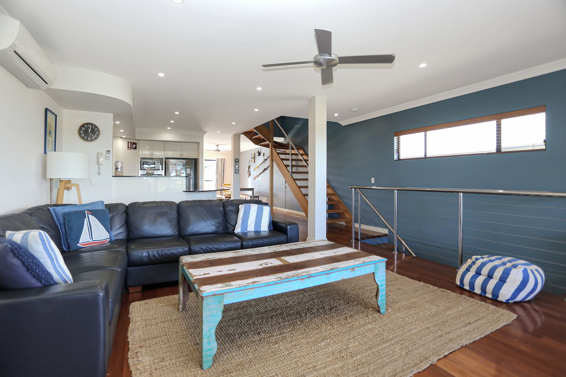 Mariner's Mark is a four-bedroom, three-bathroom holiday townhouse, which is fully equipped for perfect riverfront enjoyment. Take advantage of the river for all your favourite water activities, launch a boat at the nearby boat ramp, make use of the BBQ and outdoor areas, or just lounge about in the sun.