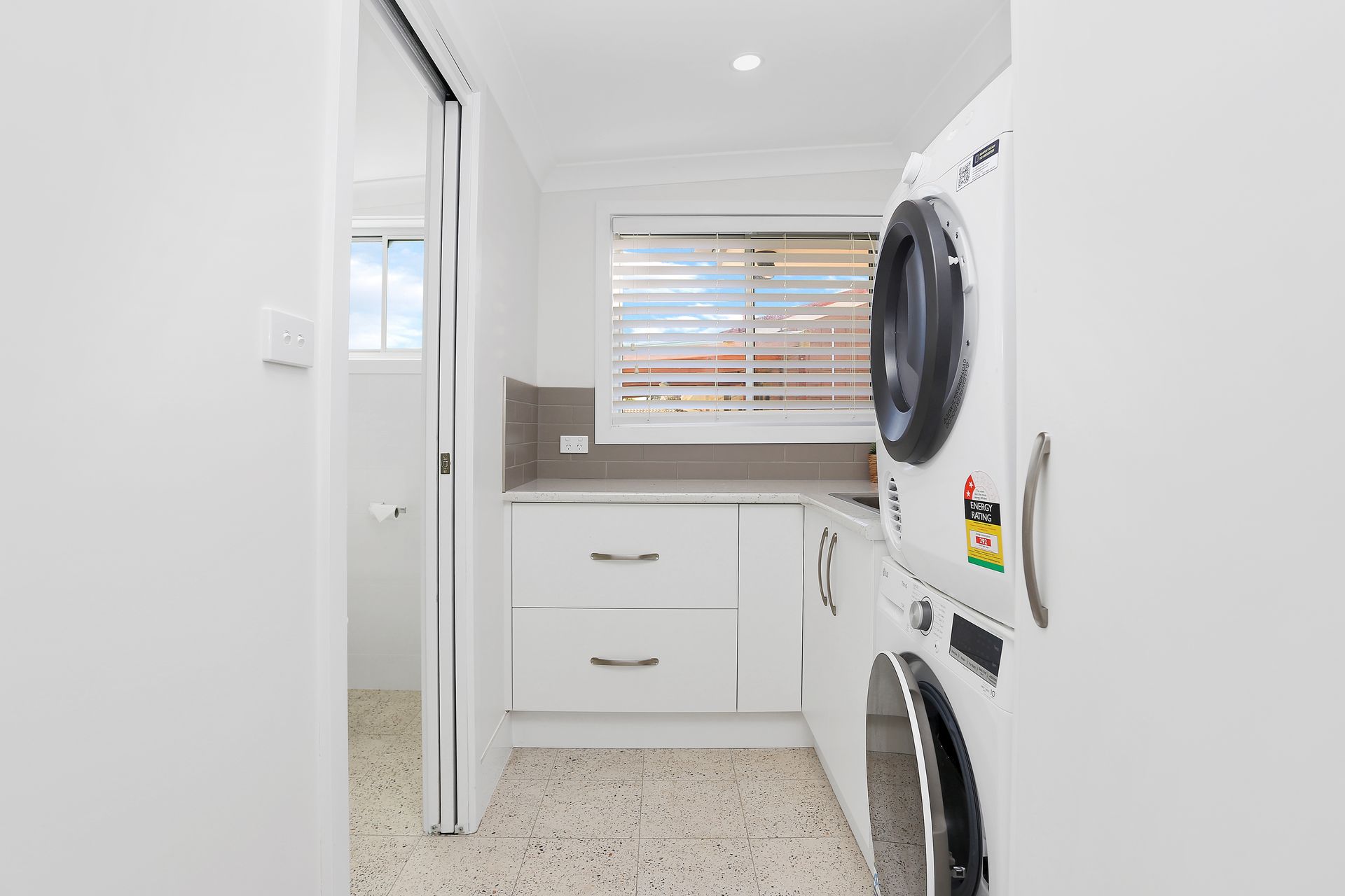 The externally accessed laundry features a second bathroom making this ideal for two couples.
