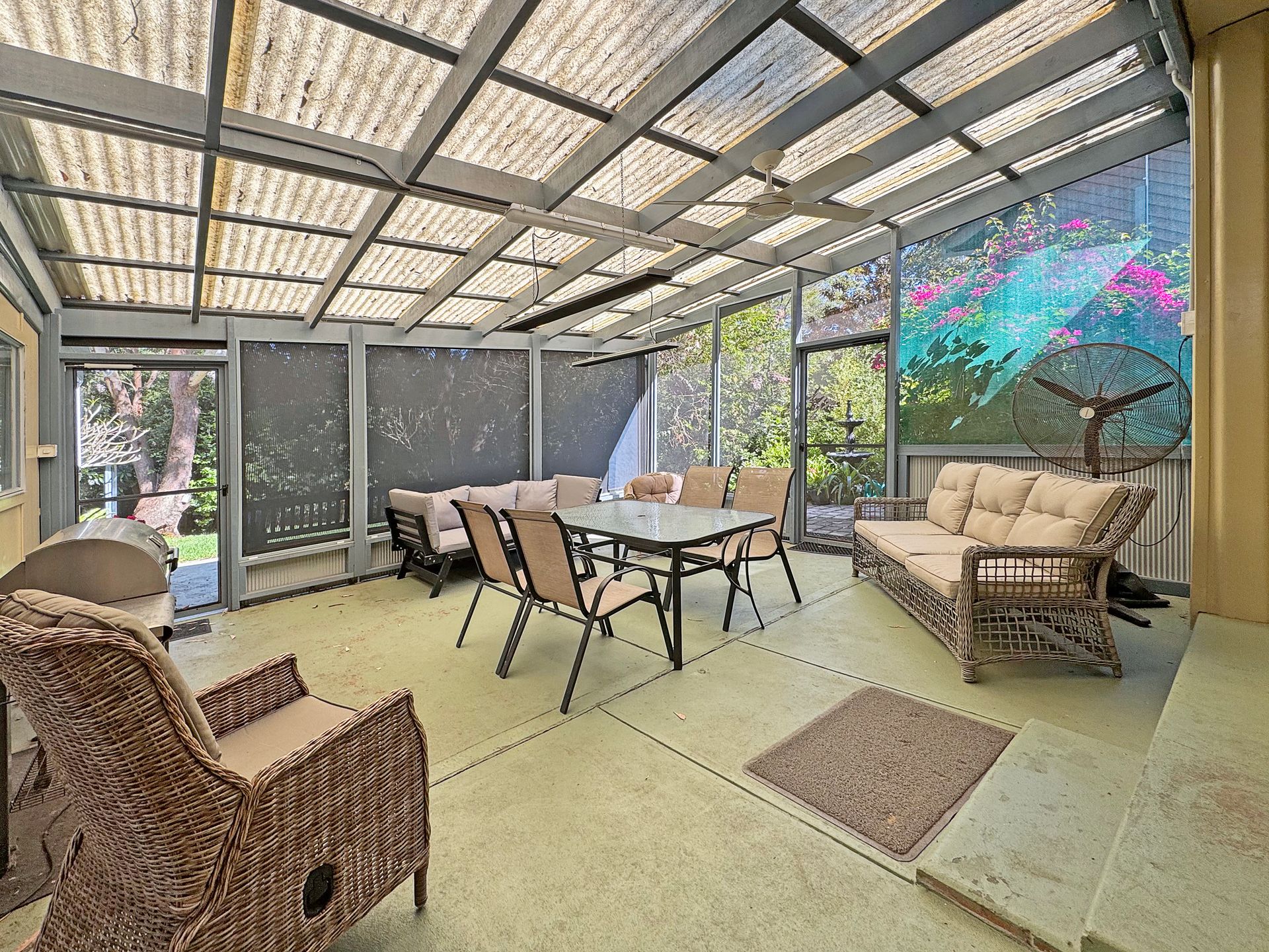 The patio/entertaining area flows into the fully fenced dog proof back yard with large lawn area and native gardens, a great place for informal summer meals or just lounging around catching up on your suntan.