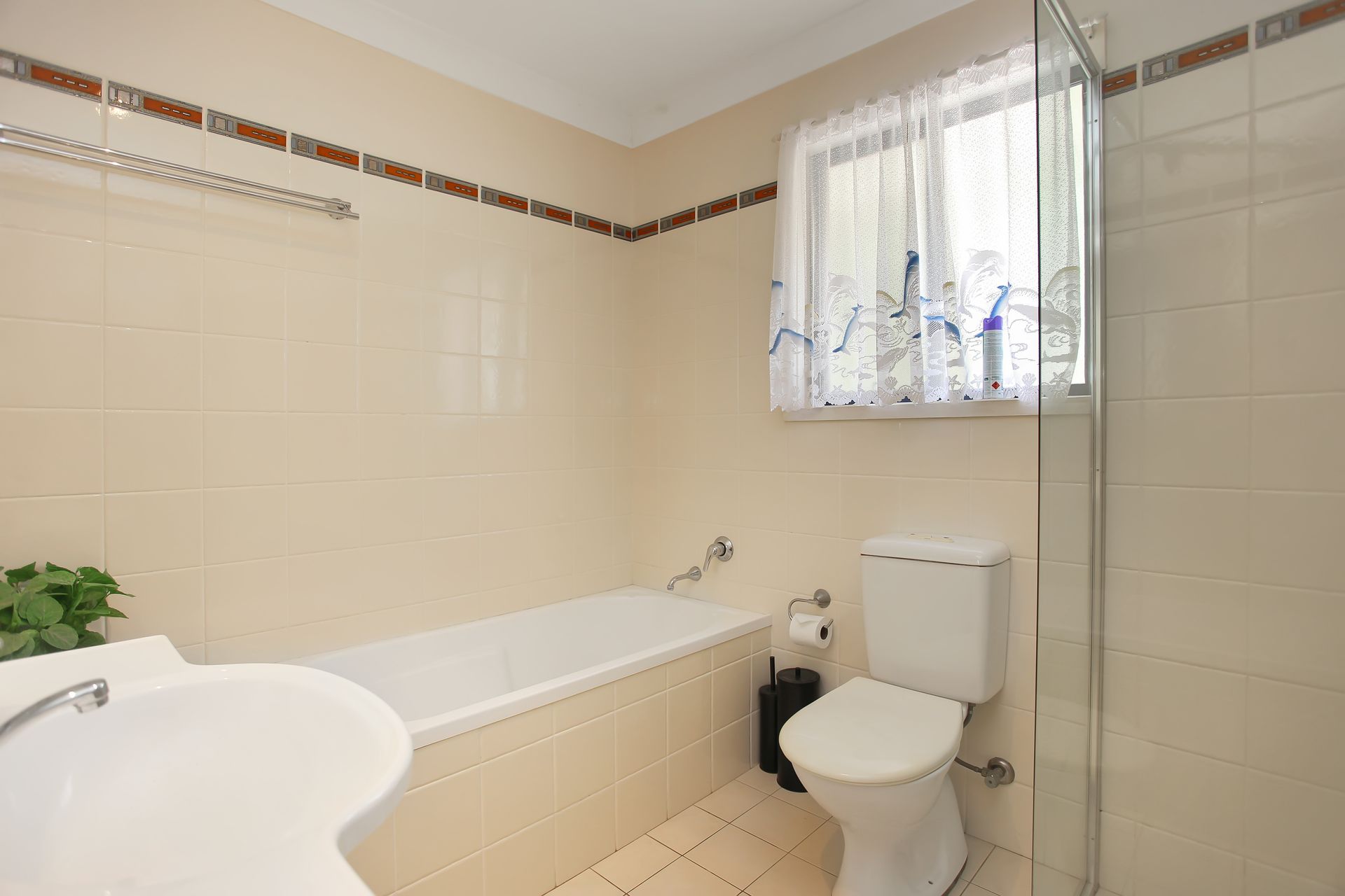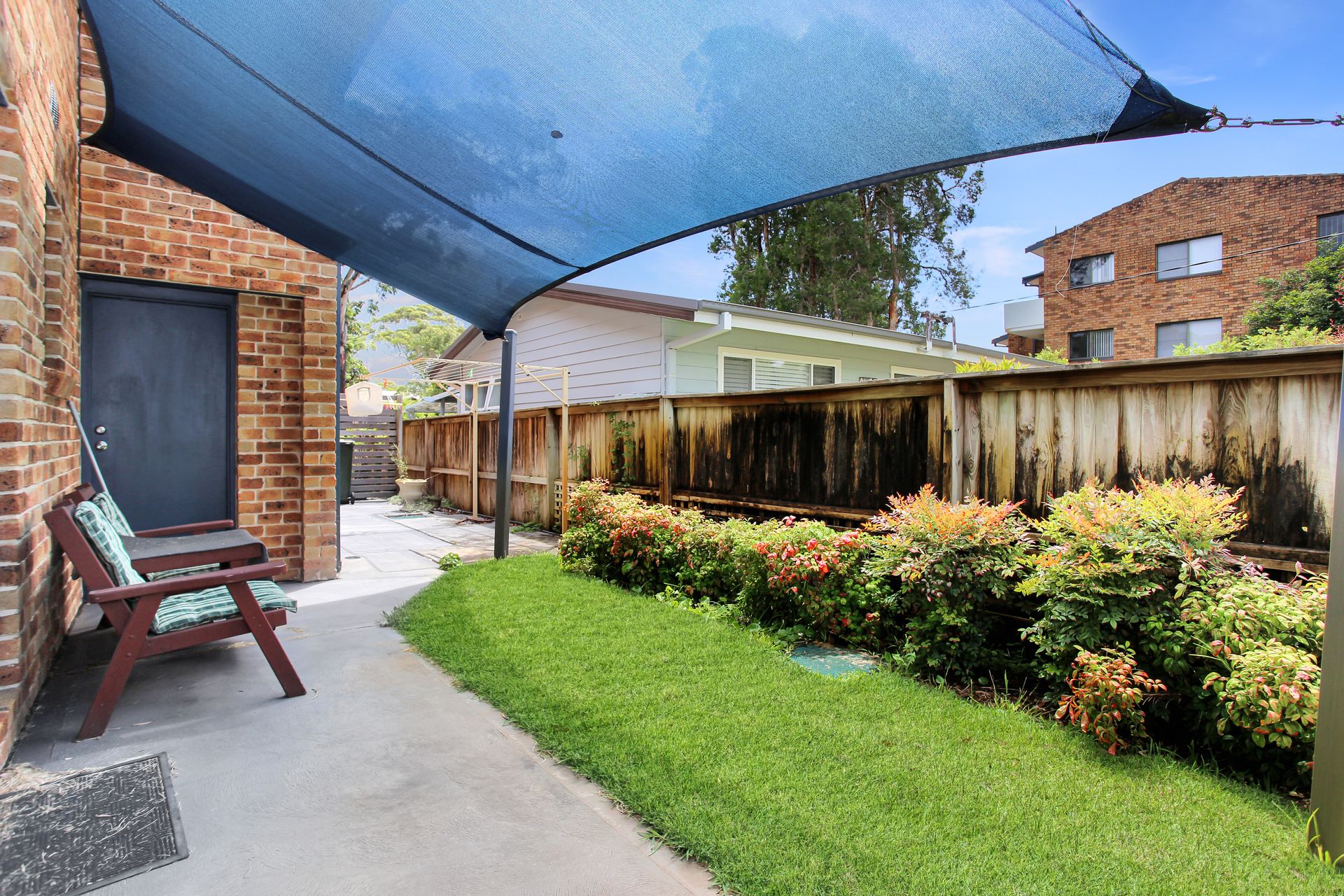 • Outside offers a grass area with a shade sail and clothesline