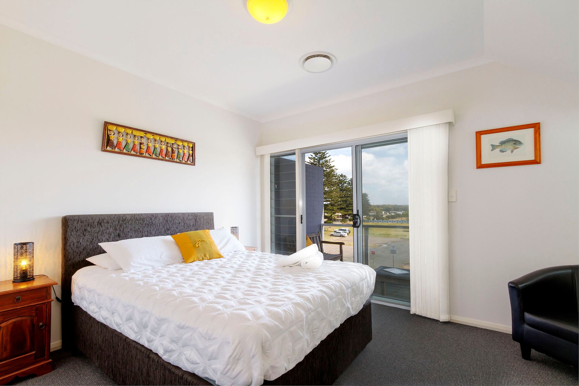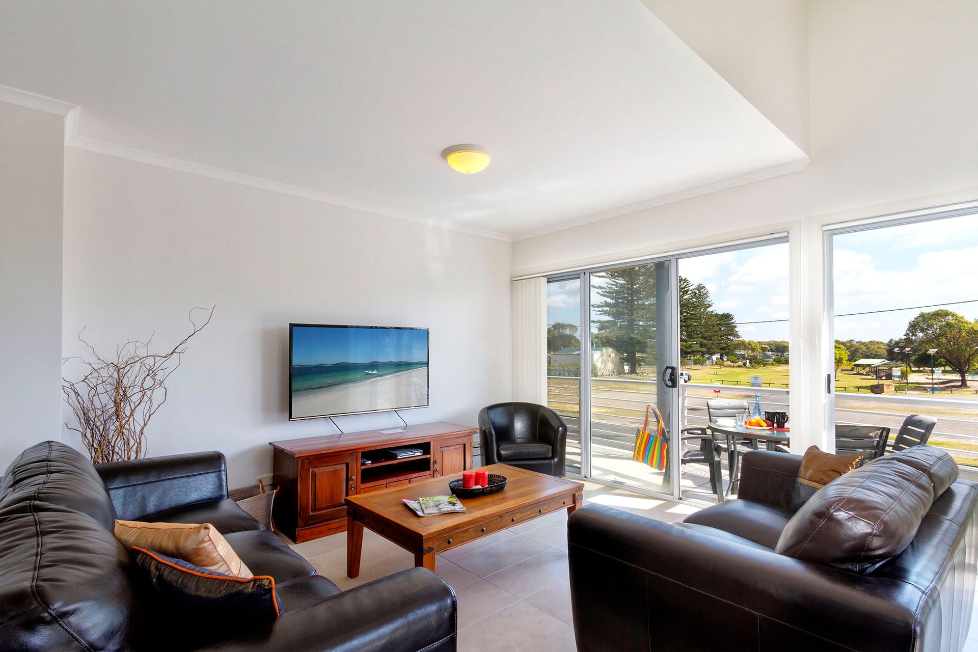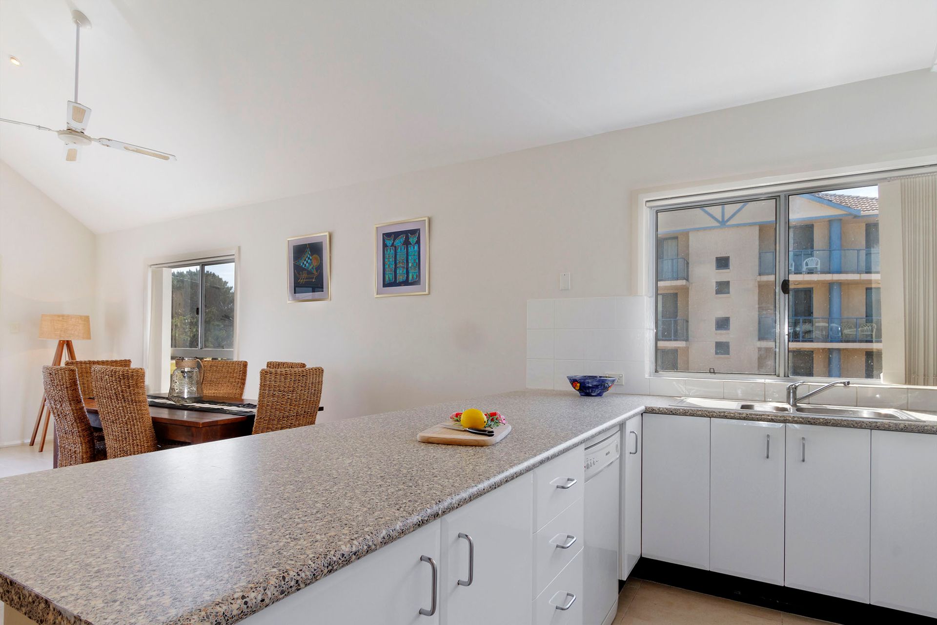 The gorgeous open living area features large sliding glass doors which open out onto the balcony where you can enjoy the glorious view of the ocean and watch the day pale into night. The strategically placed windows let the gentle ocean breeze flow through to ensure the unit is kept cool and fresh, which is just what you need on a warm summer's day. The comfortable lounges and fully equipped entertainment unit, including videos, as well as a stereo, give you something to do if you just feel like a quiet day in.