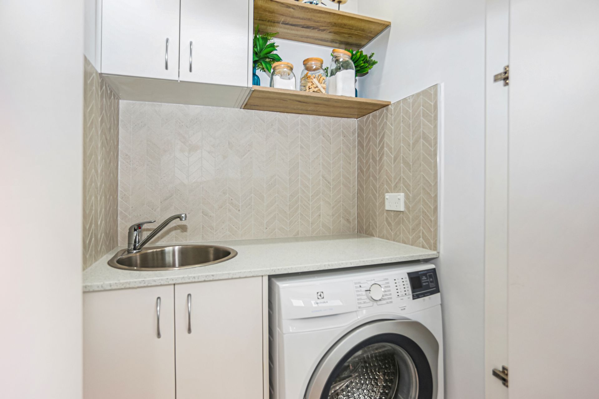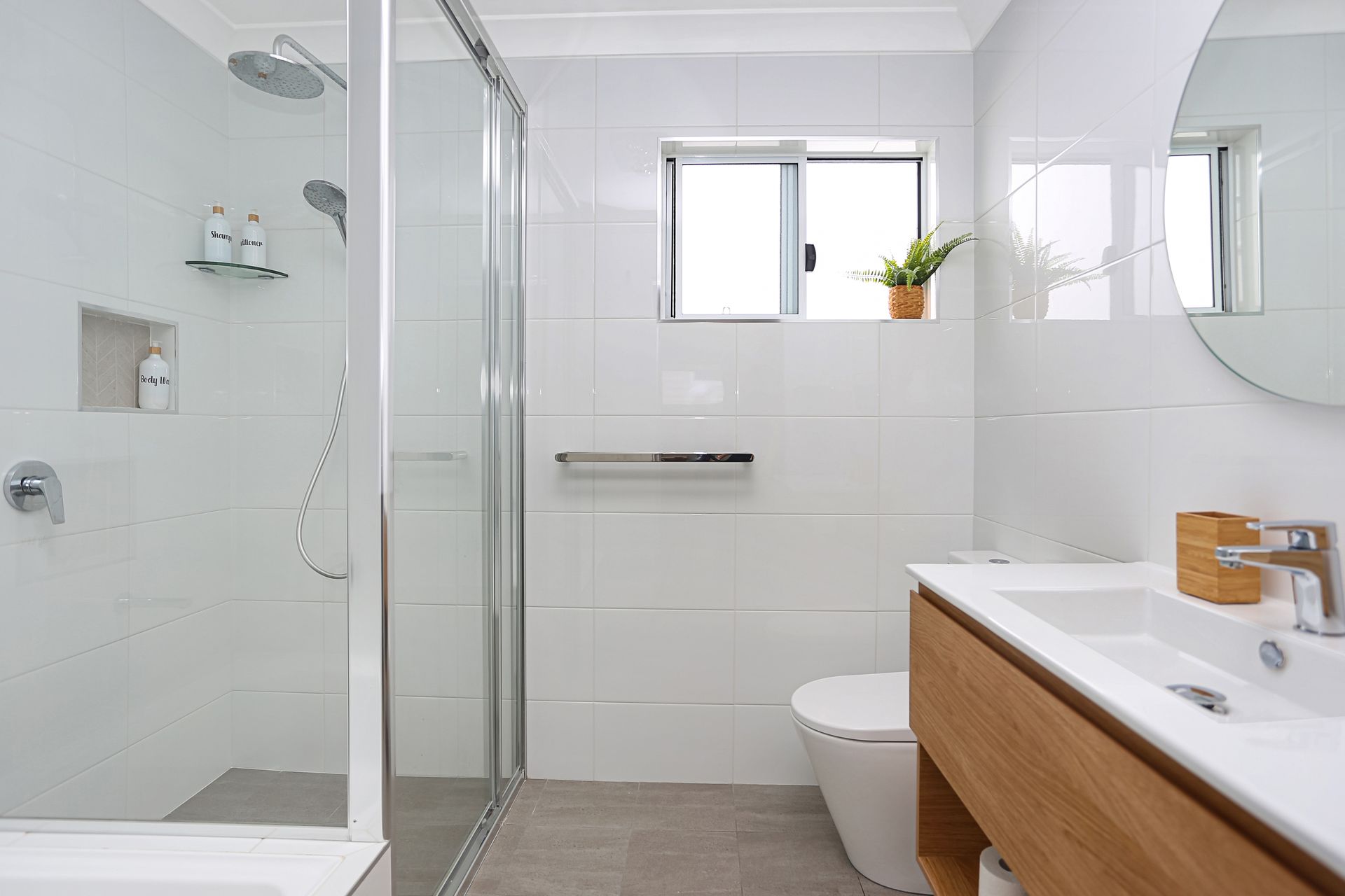 The bathroom offers a walk in shower and small bath for the little ones, making this home ideal for families with little children.