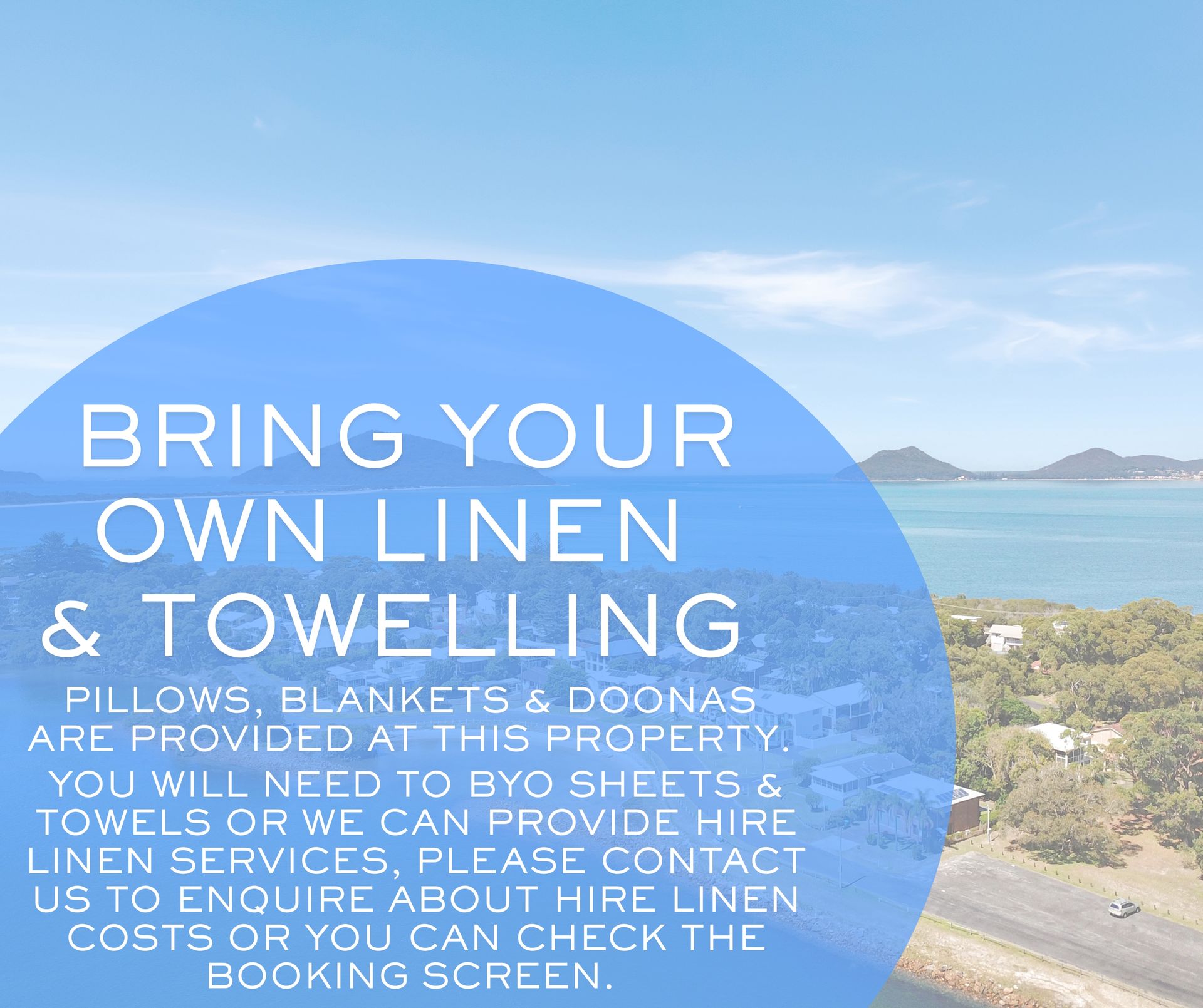 -You need to BYO sheets, pillowcases and all of your towels, or you may hire from the office at cost.