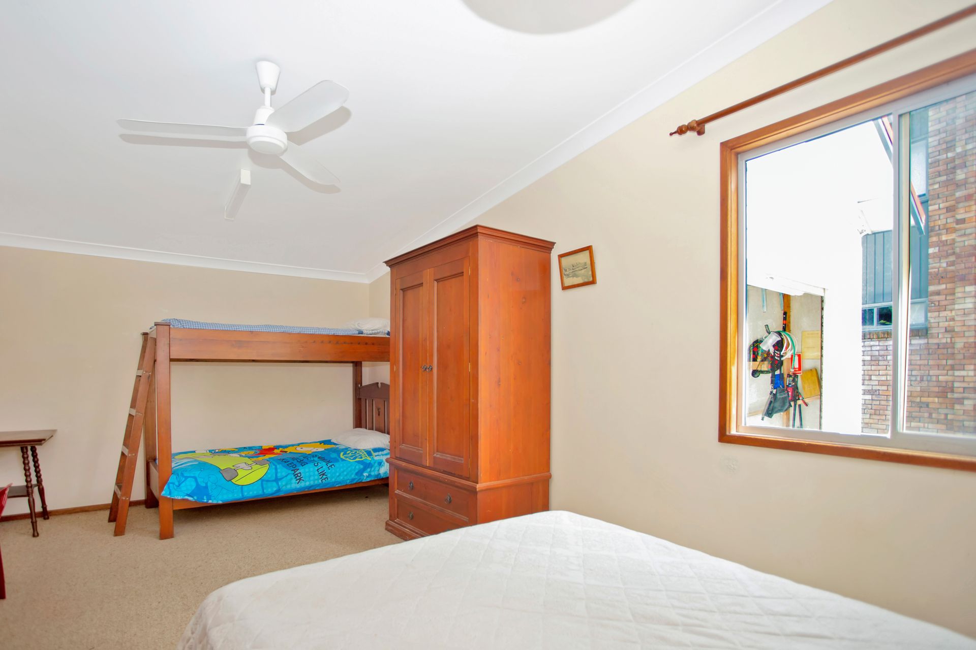 The bedrooms are generously sized, including a main with a queen bed, TV, and water views, a second queen bedroom, and a large third bedroom with a queen bed and bunk beds ideal for kids. All rooms include ceiling fans, and the home is complete with two bathrooms and a fully equipped laundry. This relaxed and welcoming escape is one you won’t want to leave.