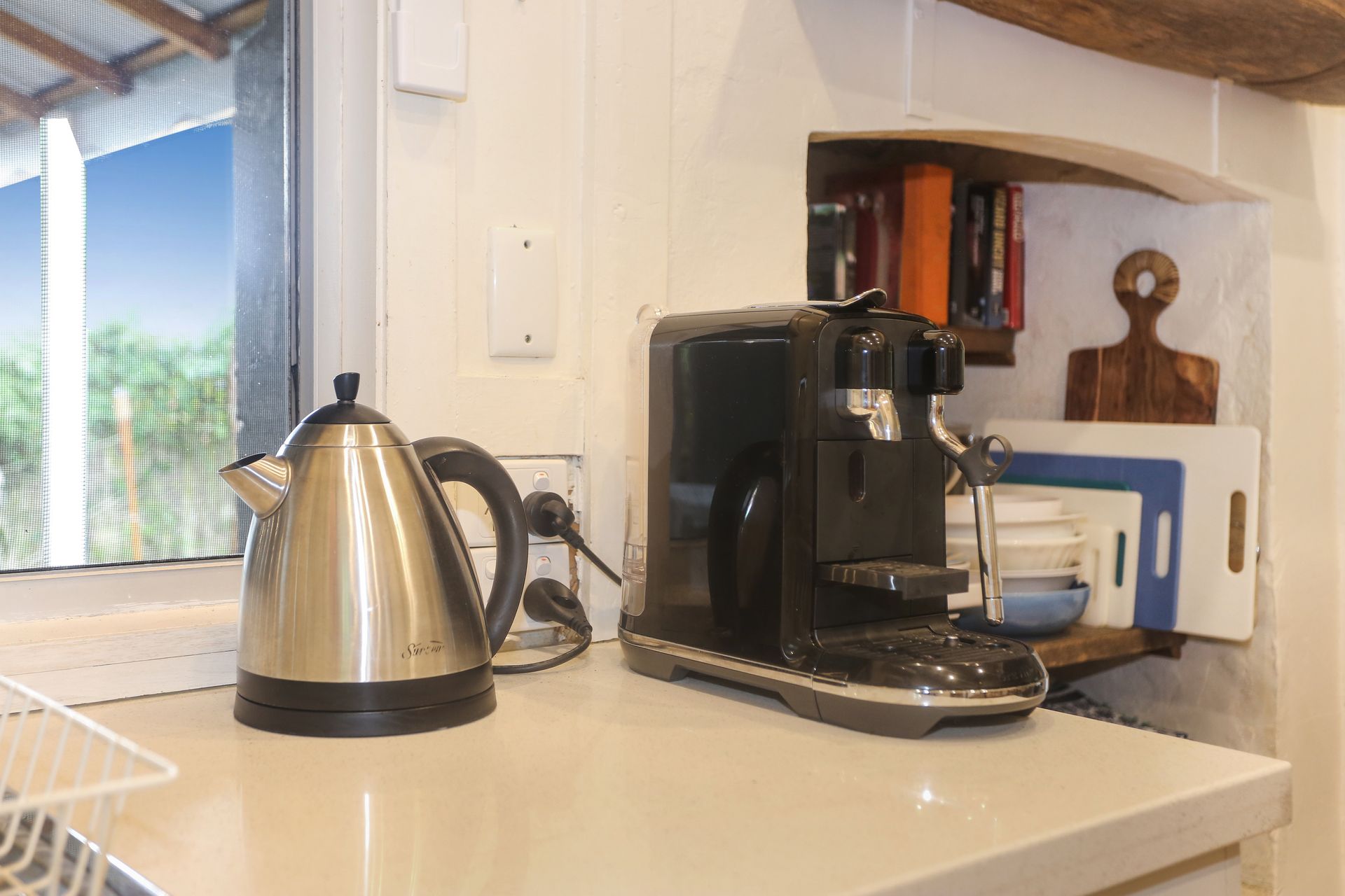 The lounge room has a comfy leather couch, a large screen LCD TV, DVD player, Apple TV (own login needed) and Sonos sound system. This modern, well appointed kitchen/indoor dining area is well equipped with all the utensils you could need as well as a Nespresso coffee machine, dishwasher and microwave.